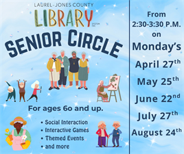 Senior Circle is held on the fourth Monday of each month from 2:30-3:30 p.m.